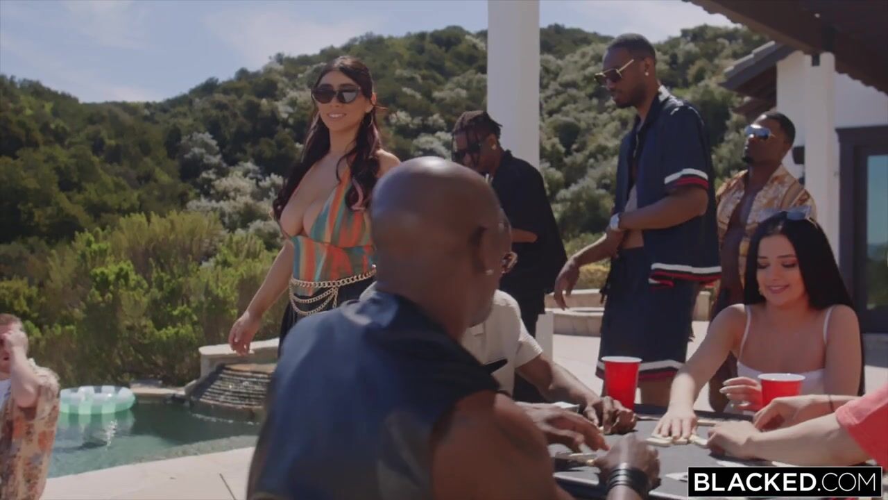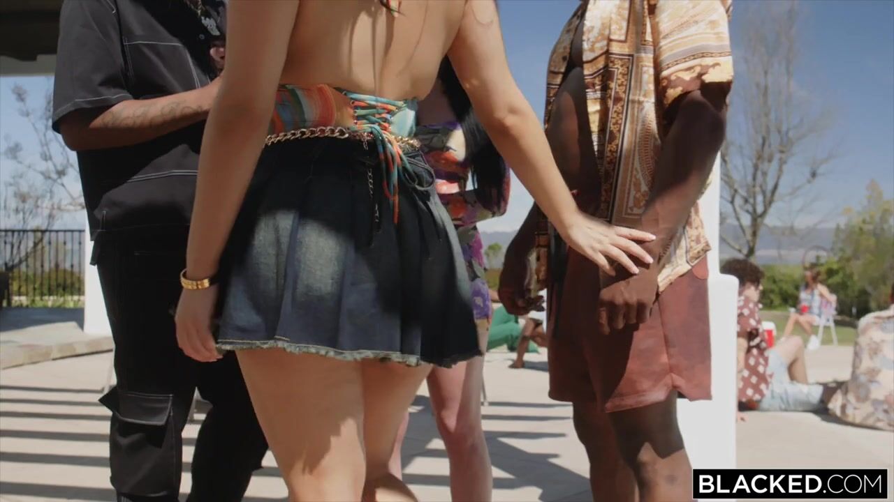 Брюнетка с обворожительно сексуальным телом приехала на взрослую вечеринку у бассейна и очаровала толпу чернокожих любовников. Красотка с длинными стройными ногами и роскошными ягодицами продемонстрировала высокое мастерство королевского минета, перед тем, как огромные черные члены принялись долбить ее узенькие дырочки