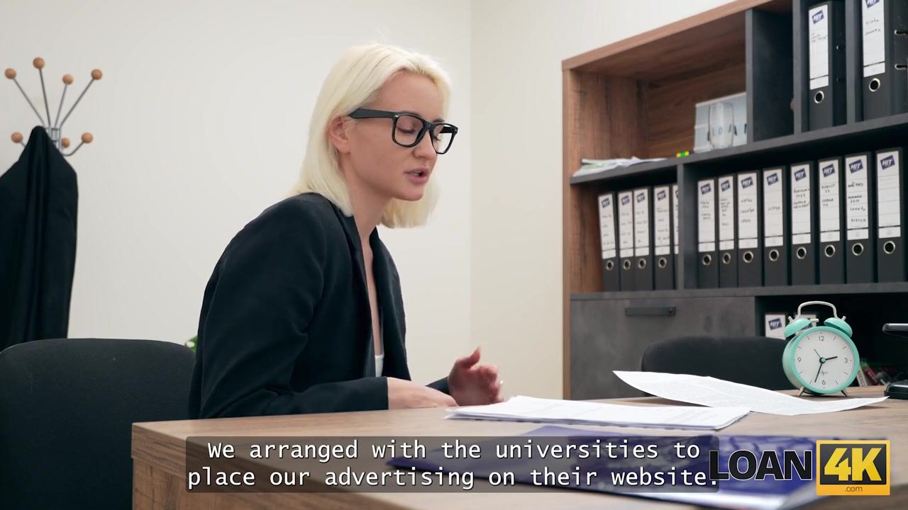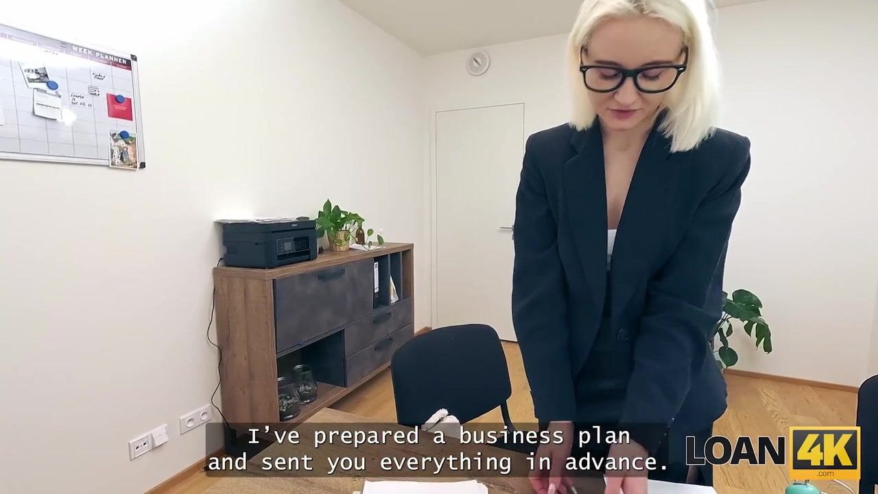 Худенькая блондинка в очках и офисном костюме пришла на собеседование к извращенному боссу компании чтоб устроиться на работу секретарем. Девушка рассказывает о своих навыках и опыте, но босса все это не интересует, он просит ее продемонстрировать умение сосать его член, а потом, ебет красотку в очко на рабочем столе