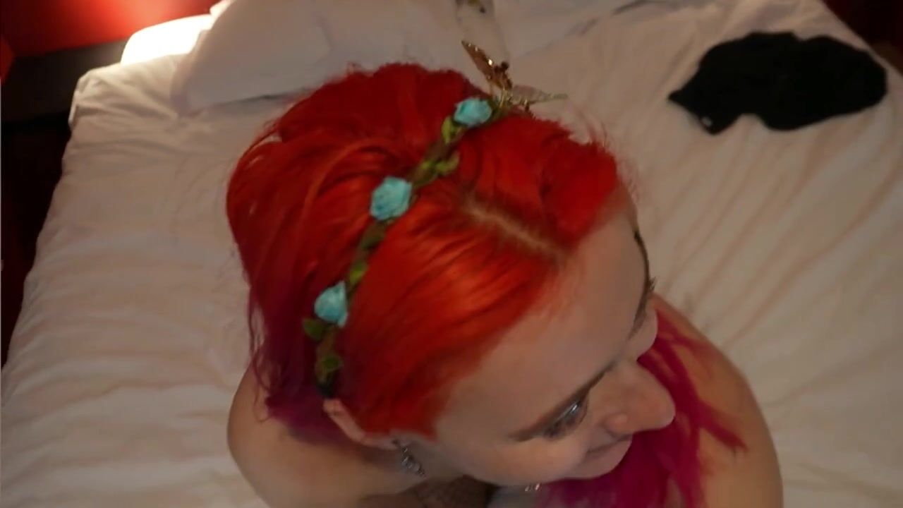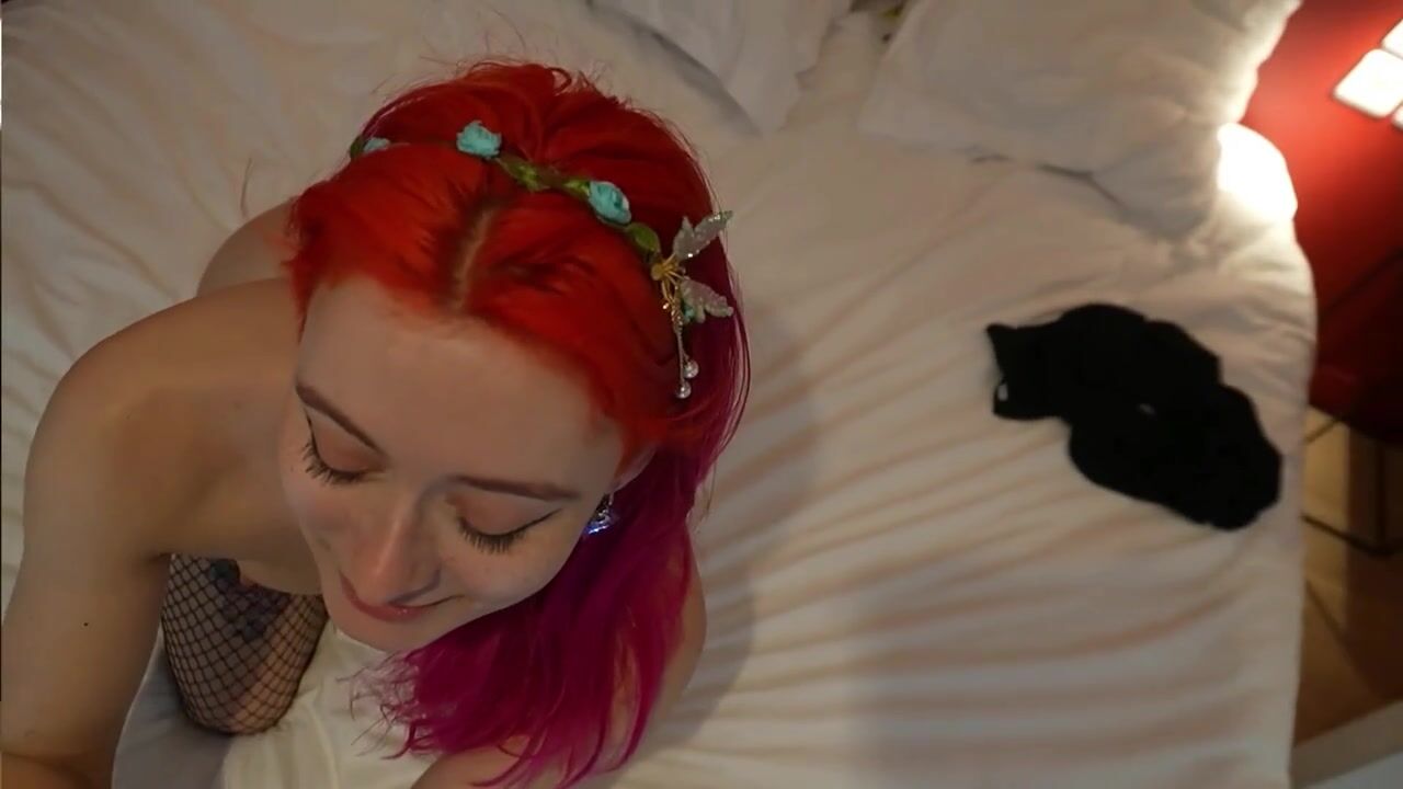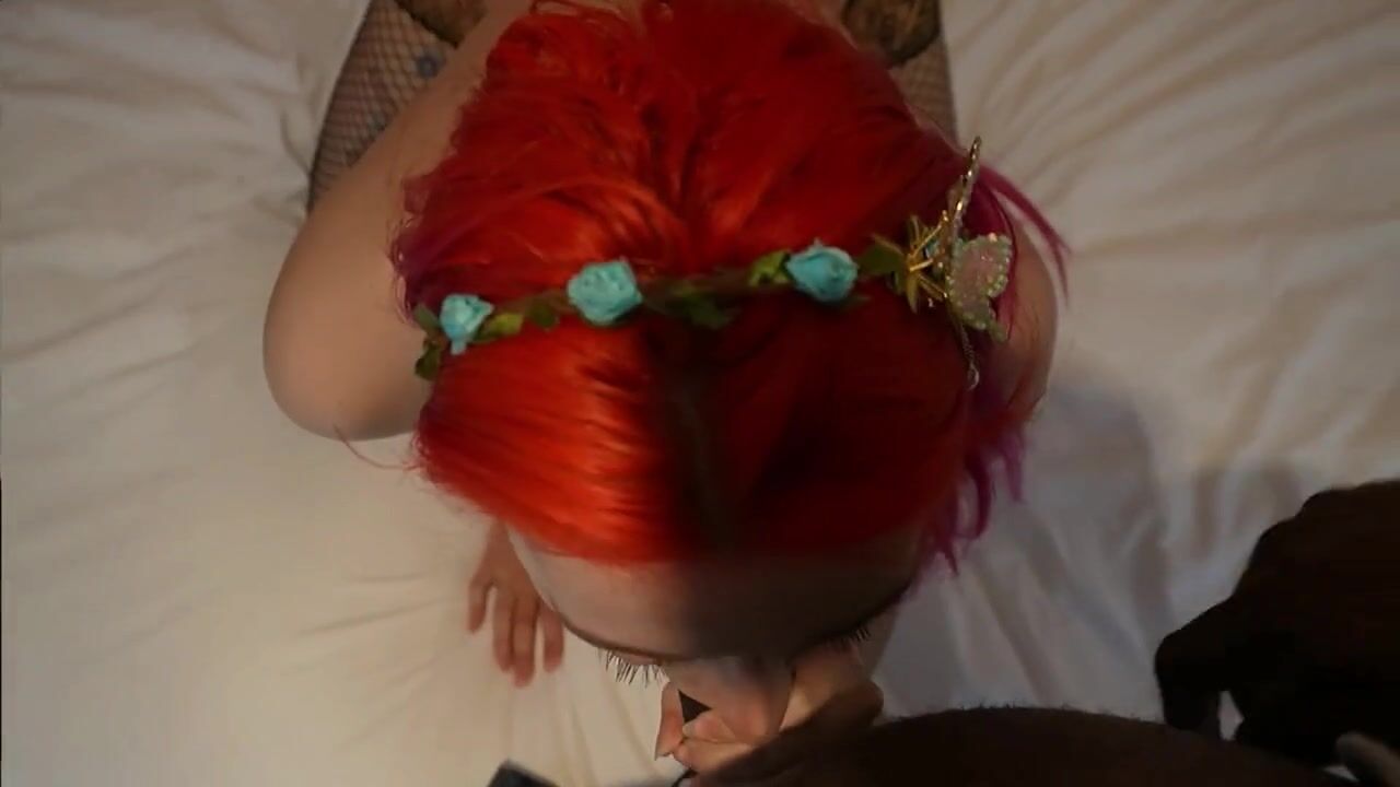Страстная рыжая девушка в черном коротком платье и сетчатых сексуальных чулках прилегла на кровать своего друга когда его не было дома и уснула. Чернокожий молодой парень вернулся со своим другом и горячо возбудился увидав роскошную подругу в своей спальне. Чуваки заставили ее эрегировать большие черные члены глубоким горловым минетом и ублажили ее межрасовым хардкор мжм