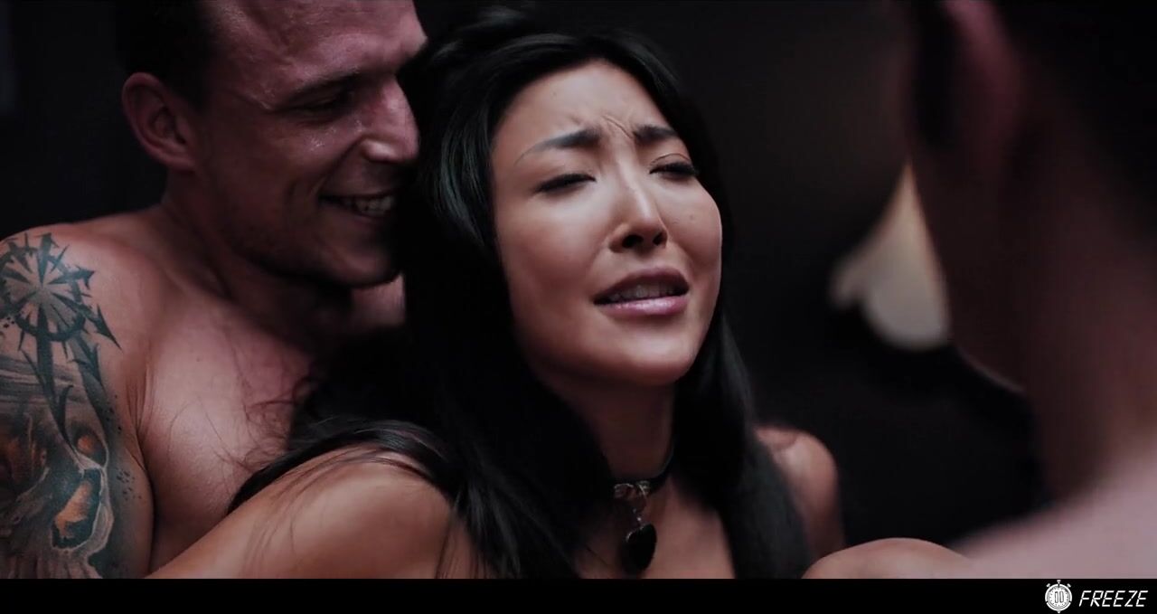 Чувак останавливает время и жестко ебет азиатку со своими дружками